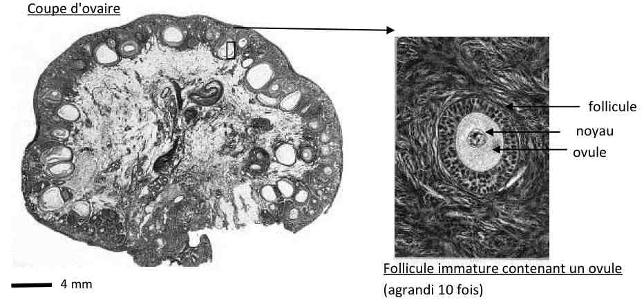 cavitaires dans la coupe) dans lesquels la maturation des follicules