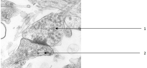 1 qui est donc la zone présynaptique, la zone 2 étant