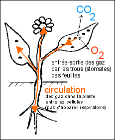 La pression partielle de dioxyde de carbone est très faible dans l'atmosphère (0,03% soit 0,031 kPa ou 0,23 mm d'Hg). En même temps que la plante fait entrer son dioxyde de carbone elle perd beaucoup d'eau (évapo-transpiration). Certaines plantes ferment leur stomates (orifice d'entrée et de sortie des gaz de la feuille) le jour, lorsque l'humidité est faible, et ne les ouvrent que la nuit, lorsque l'humidité est maximale (et donc que les pertes en eau sont moindre). Elles doivent alors stocker le dioxyde de carbone qui servira aux réactions de synthèse le jour. |